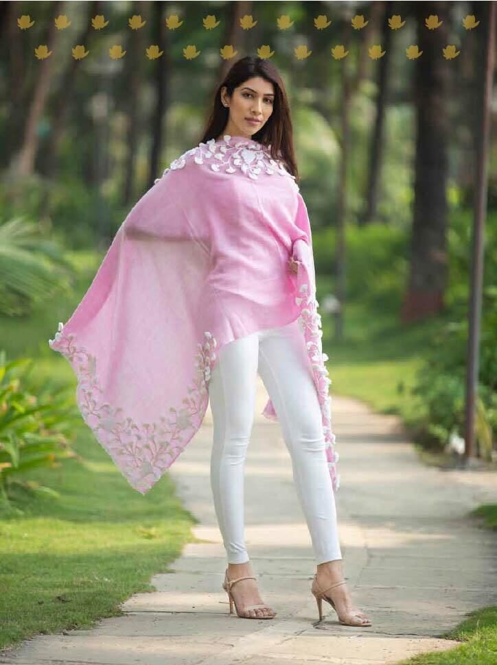 Pink – White Zardosi Flowers and leaves on 2 sides