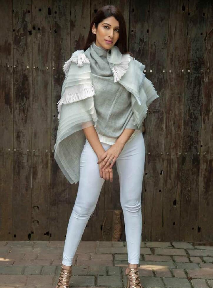 Grey – White Organza Layers with White Rafiya 2 Sides